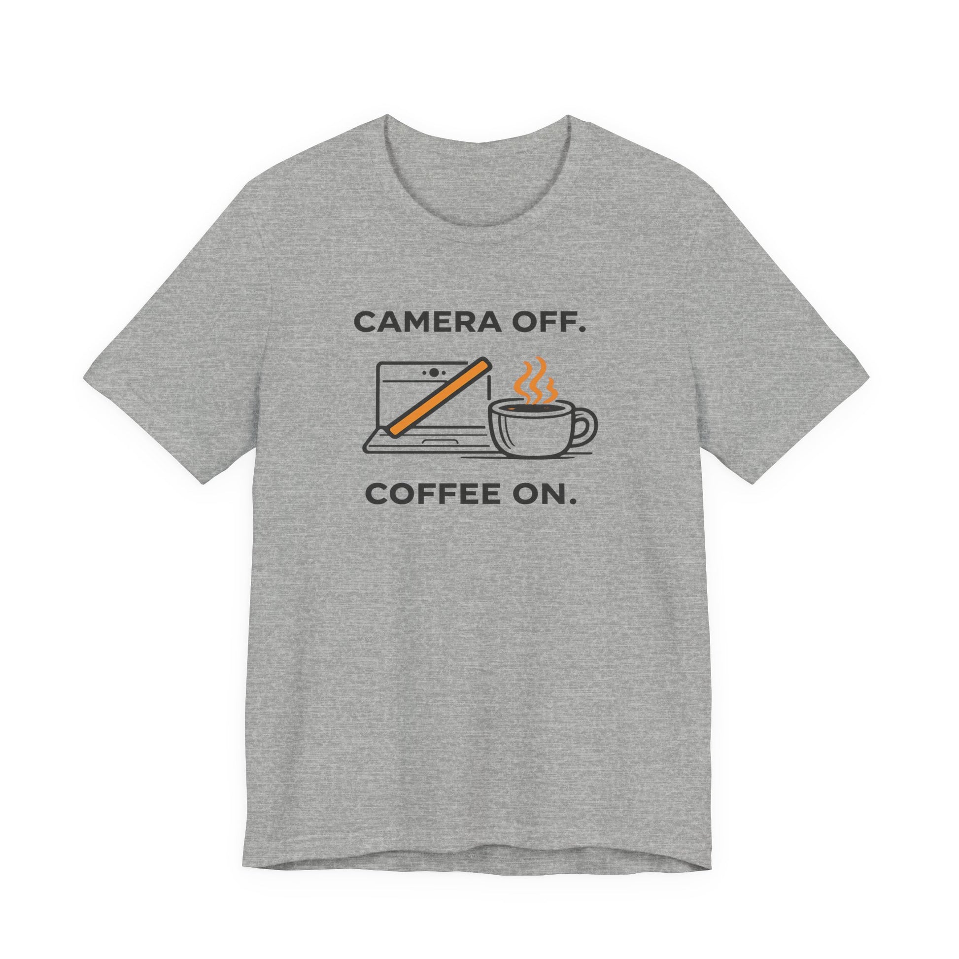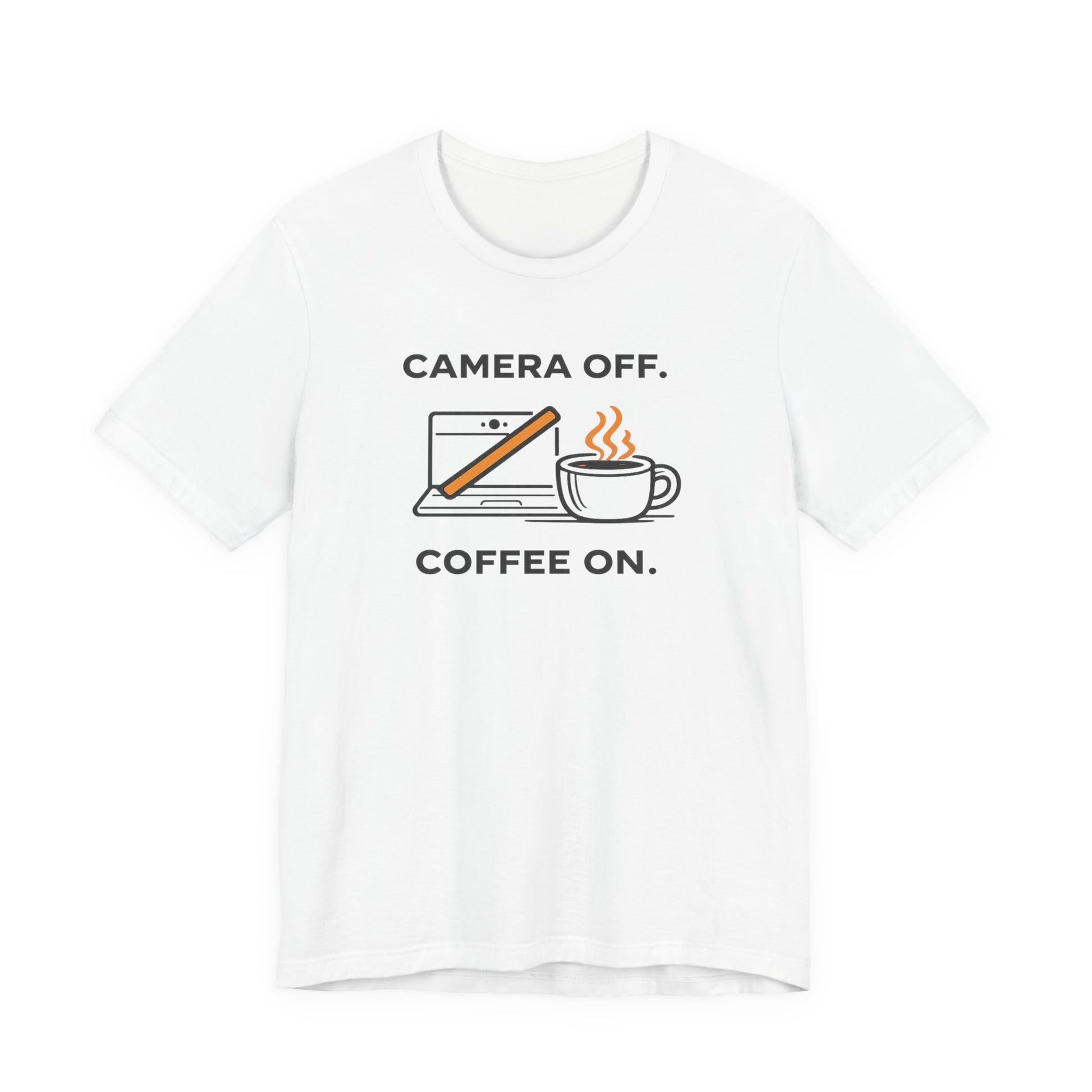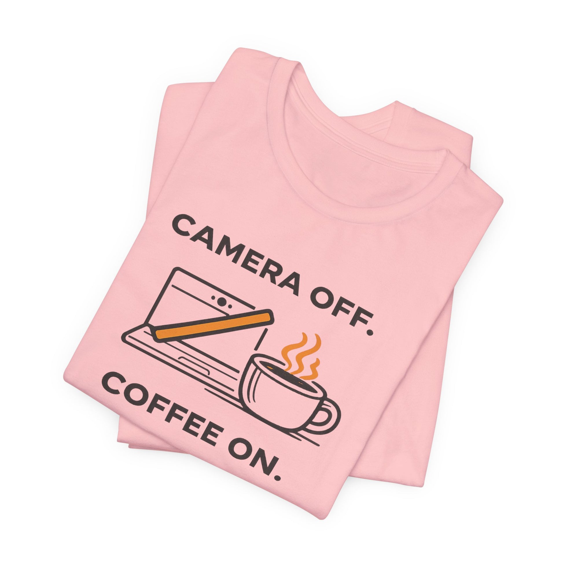 Camera Off, Coffee On Unisex Tee Perfect for remote workers who've mastered the art of staying cozy while staying productive. This unisex tee celebrates the universal work-from-home mood: video calls can wait, but coffee cannot. Soft, comfortable, and relatable—ideal for anyone who knows that the best meetings happen after that first sip. Wear it to the home office, the coffee shop, or anywhere you're clocking in on your own terms.