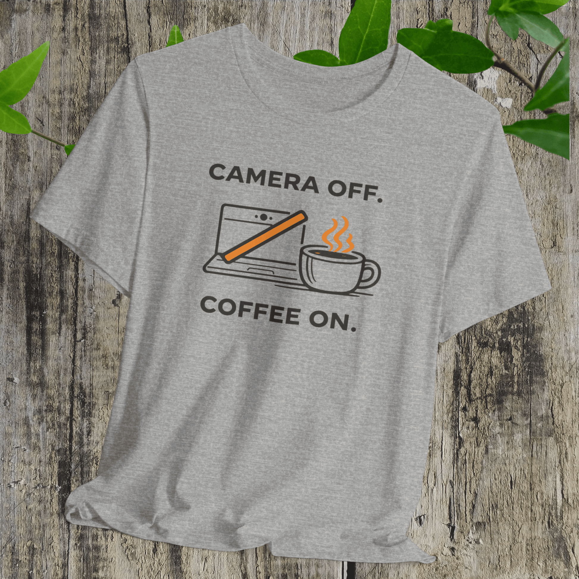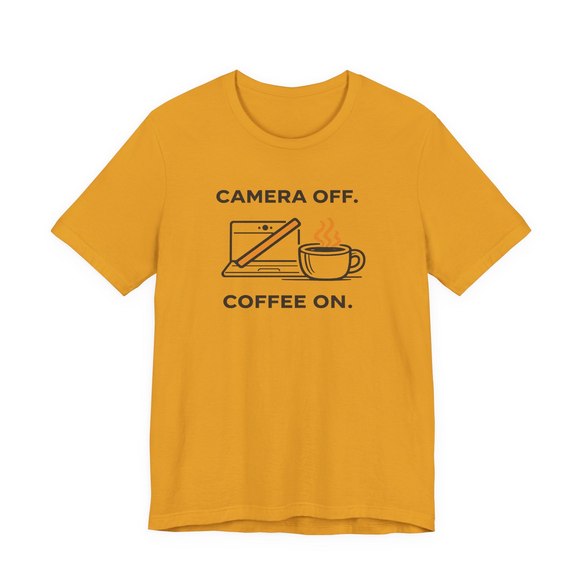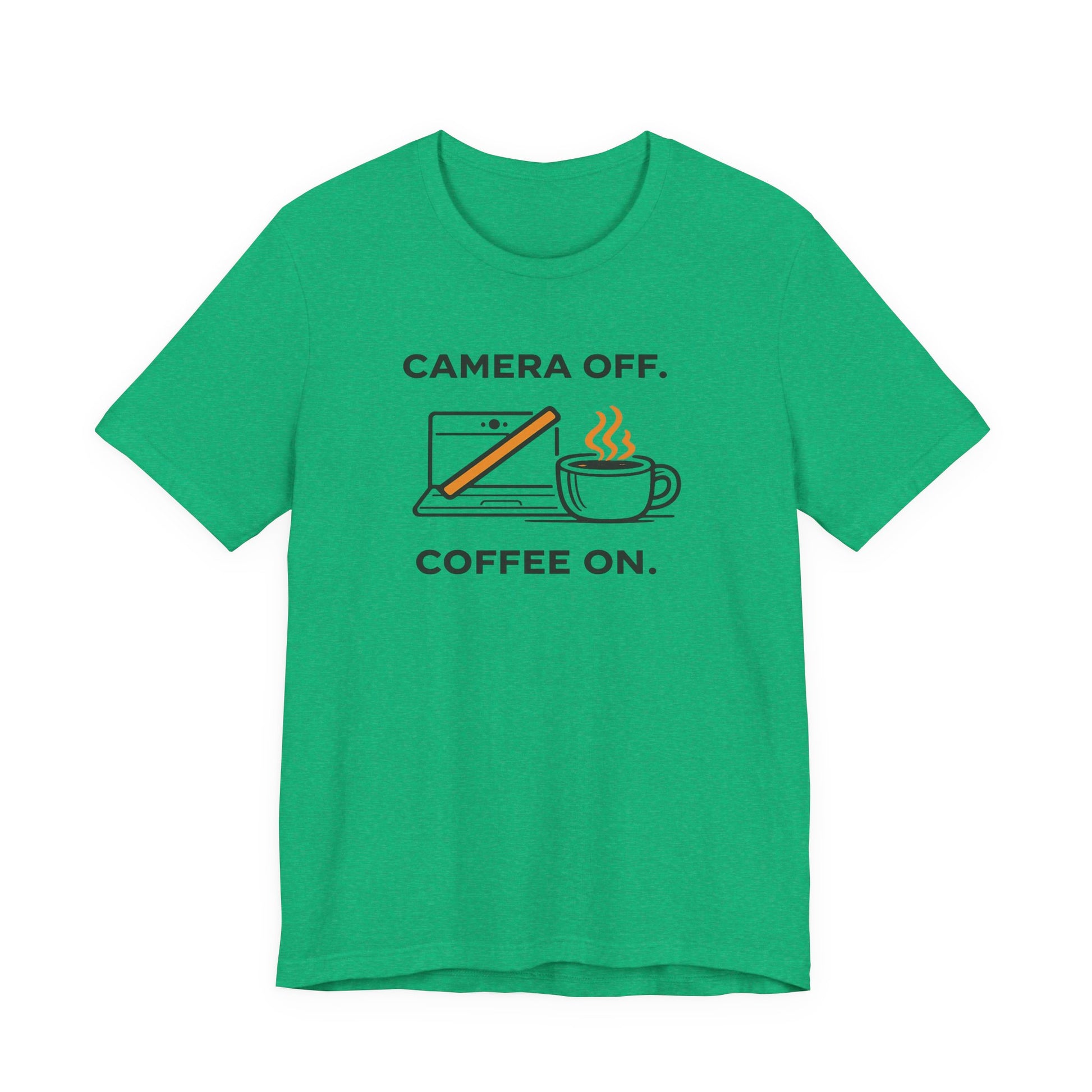 Camera Off, Coffee On Unisex Tee Perfect for remote workers who've mastered the art of staying cozy while staying productive. This unisex tee celebrates the universal work-from-home mood: video calls can wait, but coffee cannot. Soft, comfortable, and relatable—ideal for anyone who knows that the best meetings happen after that first sip. Wear it to the home office, the coffee shop, or anywhere you're clocking in on your own terms.