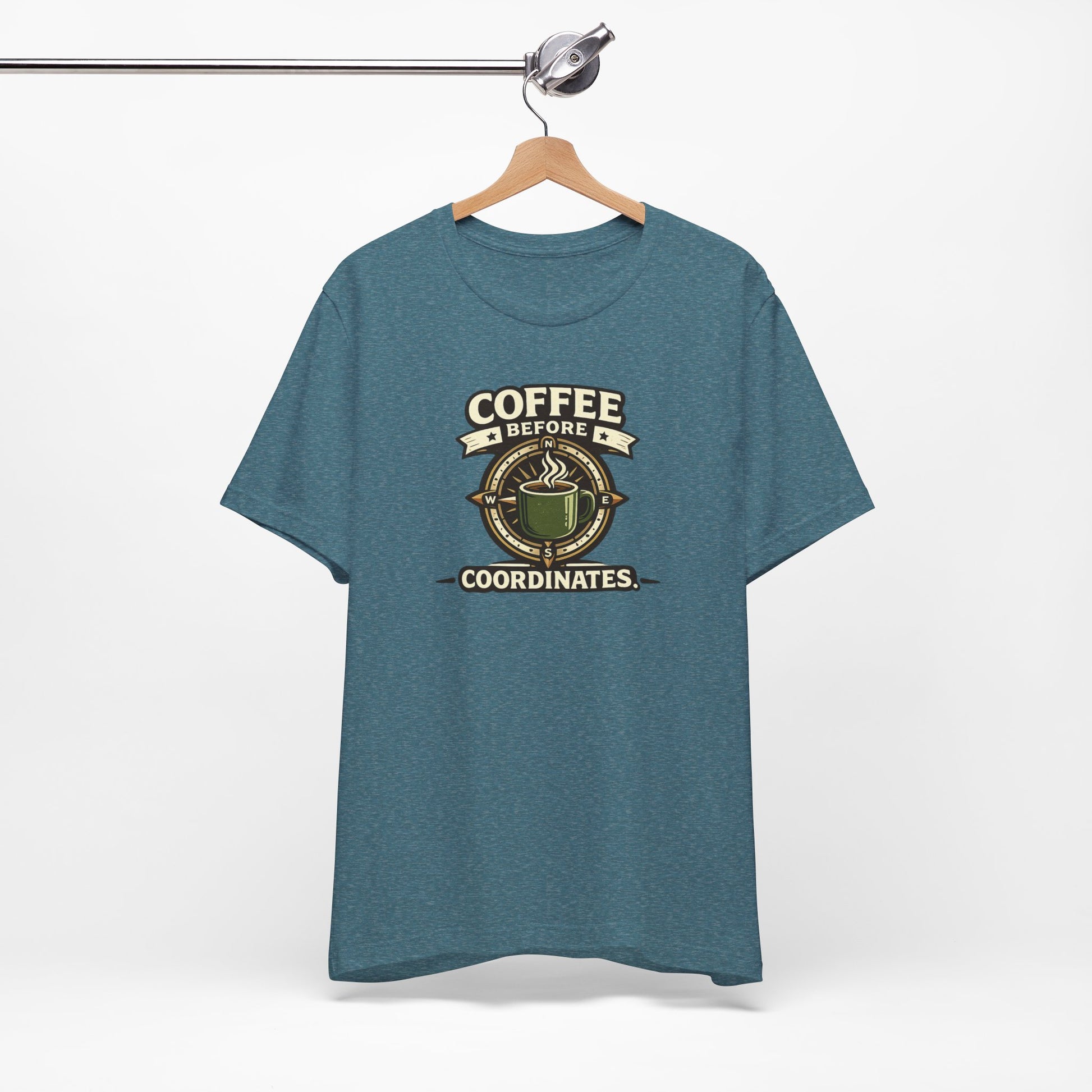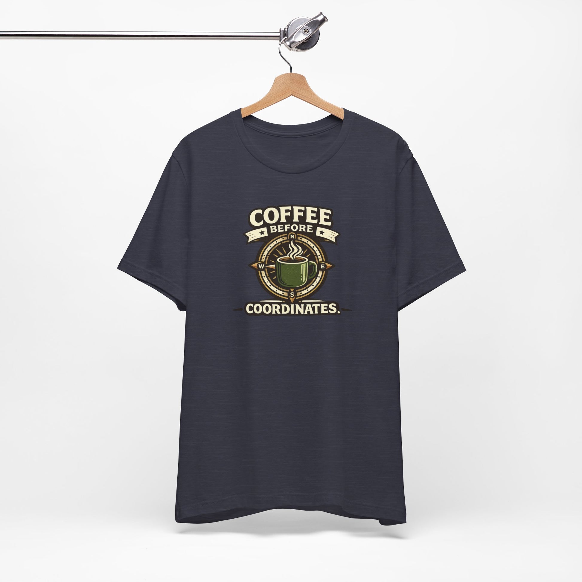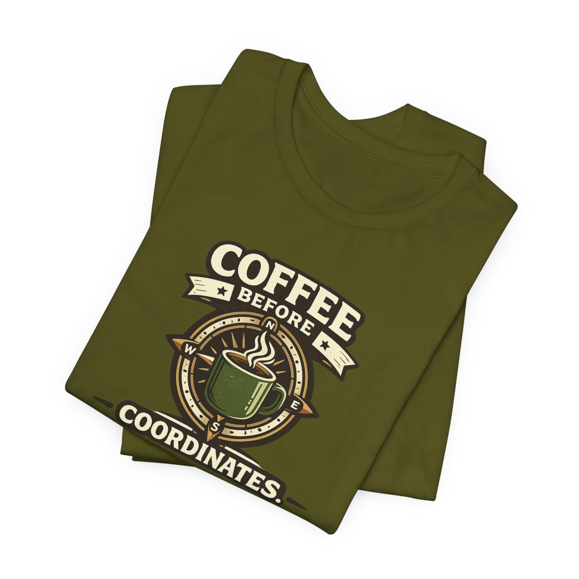Coffee Before Coordinates T-Shirt — Funny Travel & Navigation Tee