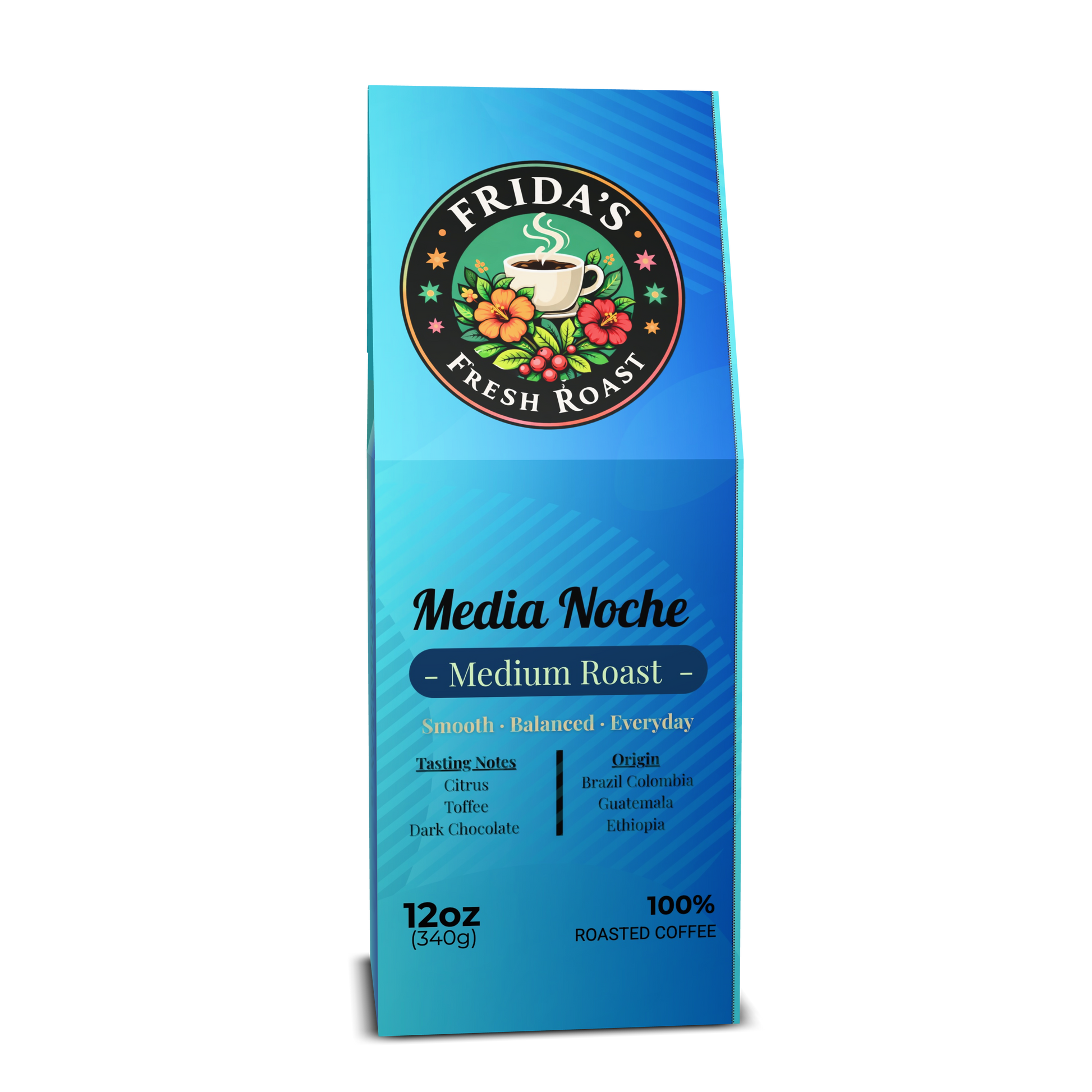 Smooth. Balanced. Everyday perfect. Media Noche is your go-to medium roast — a four-origin blend bringing together citrus lift, toffee sweetness, and deep dark chocolate richness. Smooth enough to start your day, bold enough to carry you through the night. ☕ Tasting Notes: Citrus · Toffee · Dark Chocolate 🌍 Origin: Brazil · Colombia · Guatemala · Ethiopia Suavecito, a tu gusto — y aquí te quedas. ➤ Small-batch roasted to order. Ships fresh.