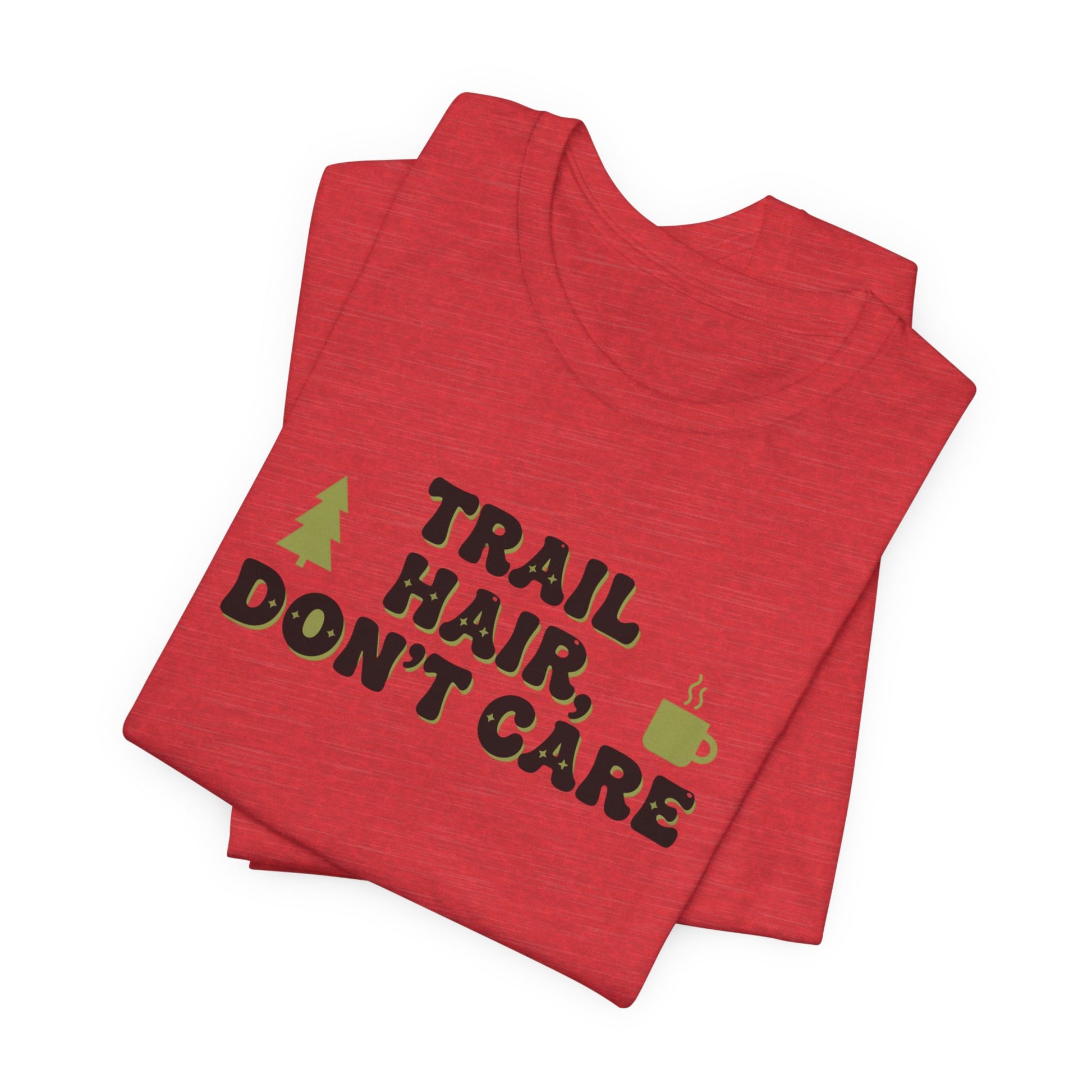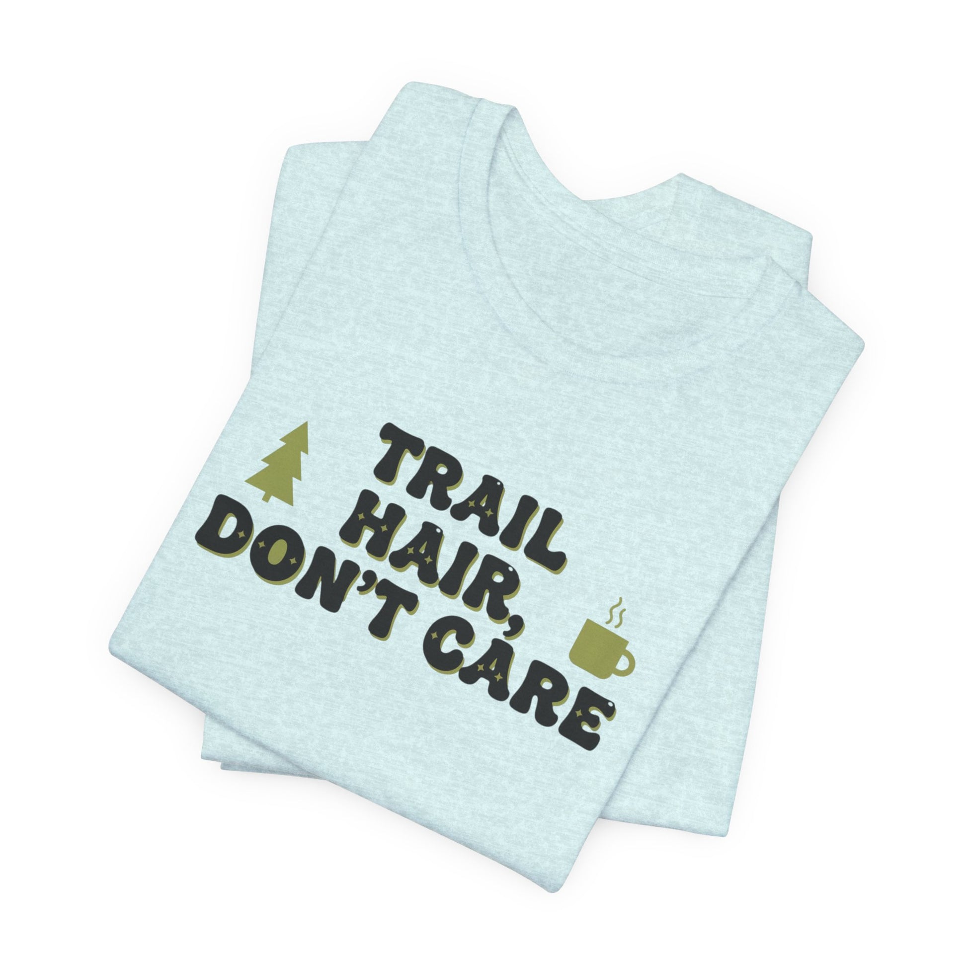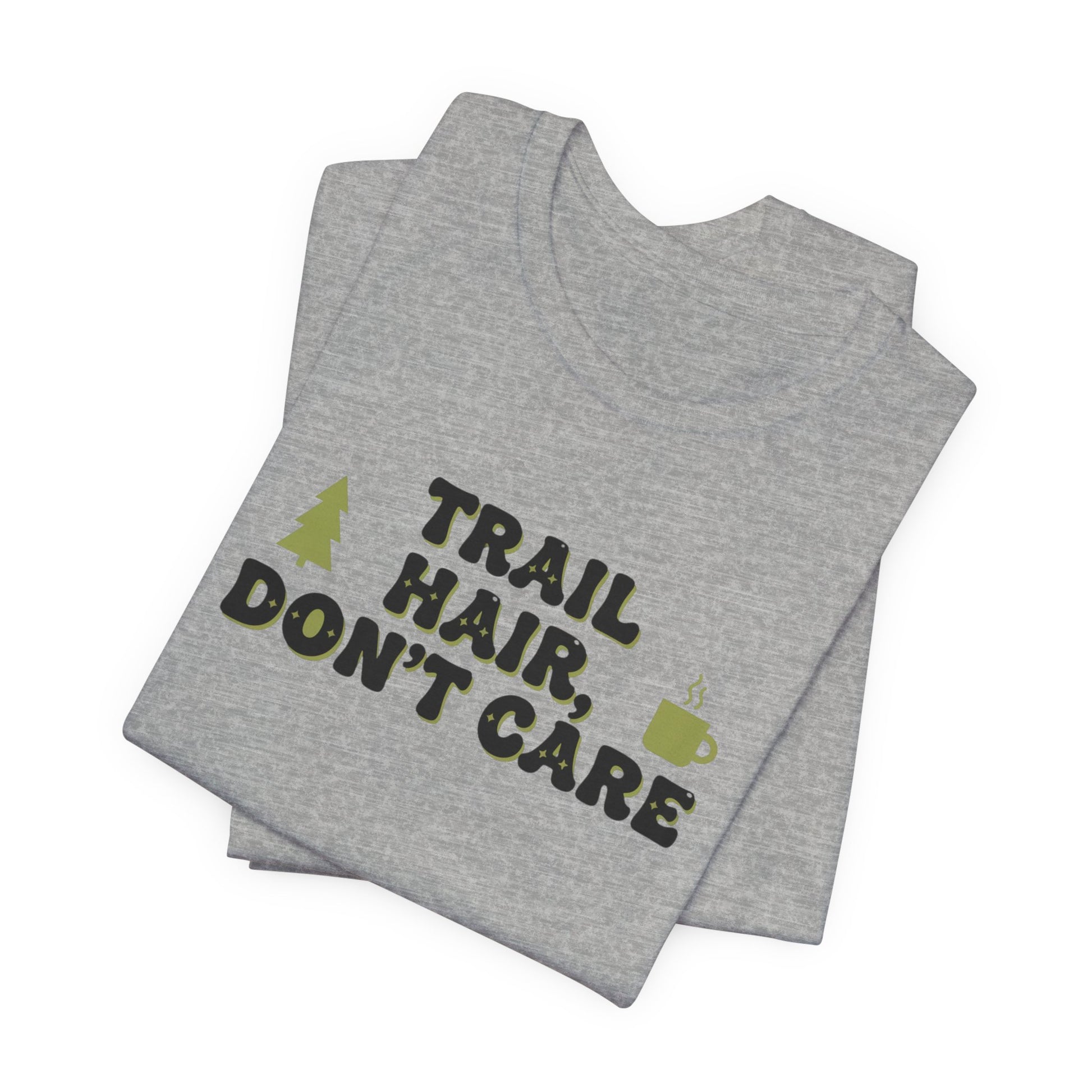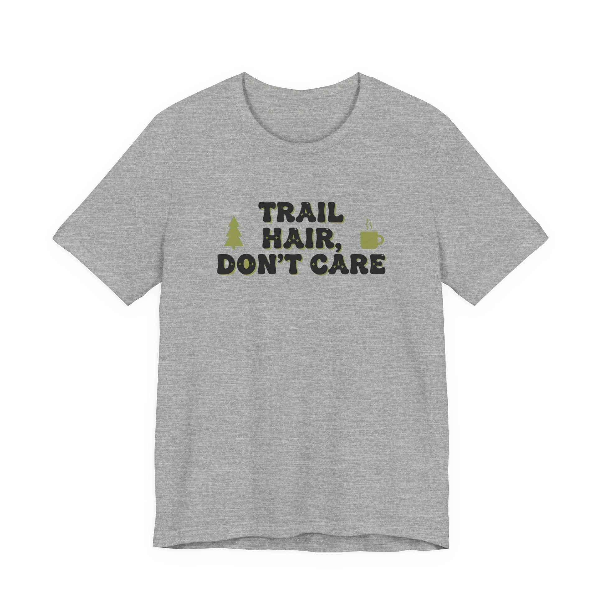 Lightweight, breathable tee that reads like a short love letter to the trail. The front print — bold text flanked by a tiny pine and a steaming mug — celebrates mornings on the path and the easy, messy hair that comes with them. Cut in a retail crew neck with side seams and a ribbed collar, the shirt layers well under flannels or stands alone on warmer days. Made from soft Airlume combed, ring-spun cotton with a tear-away label and thoughtful shoulder tape for durability. Subtle color-blend options add texture while keeping the feel relaxed and lived-in.