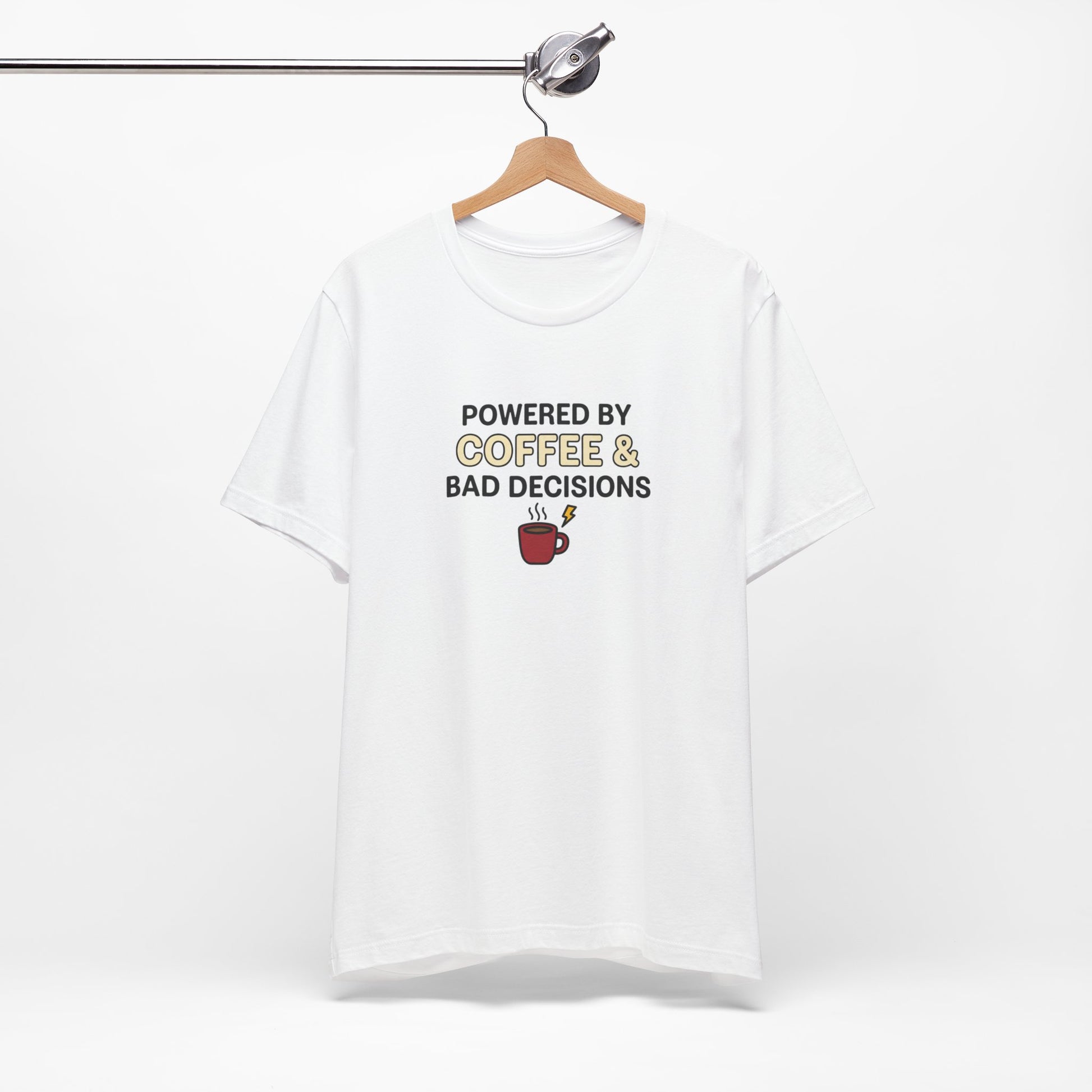 Powered by caffeine and questionable choices—this unisex tee is for anyone who runs on coffee and spontaneity. Soft, comfortable, and unapologetically honest, it's the perfect conversation starter for your morning commute or casual hangout. Available in classic colors, it pairs effortlessly with your favorite jeans or coffee mug. Because sometimes the best decisions are made after the first cup.
